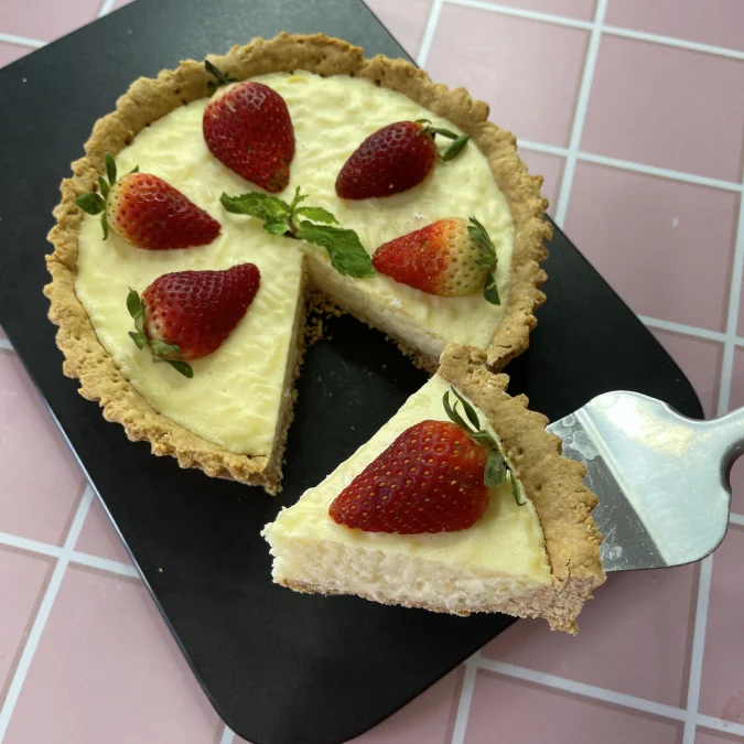 Paso 4:Lleva al horno precalentado a 180°C por 10 minutos, hasta que esté ligeramente dorada